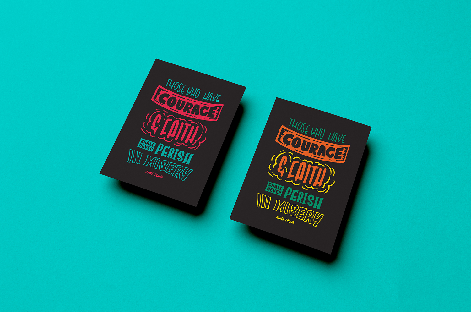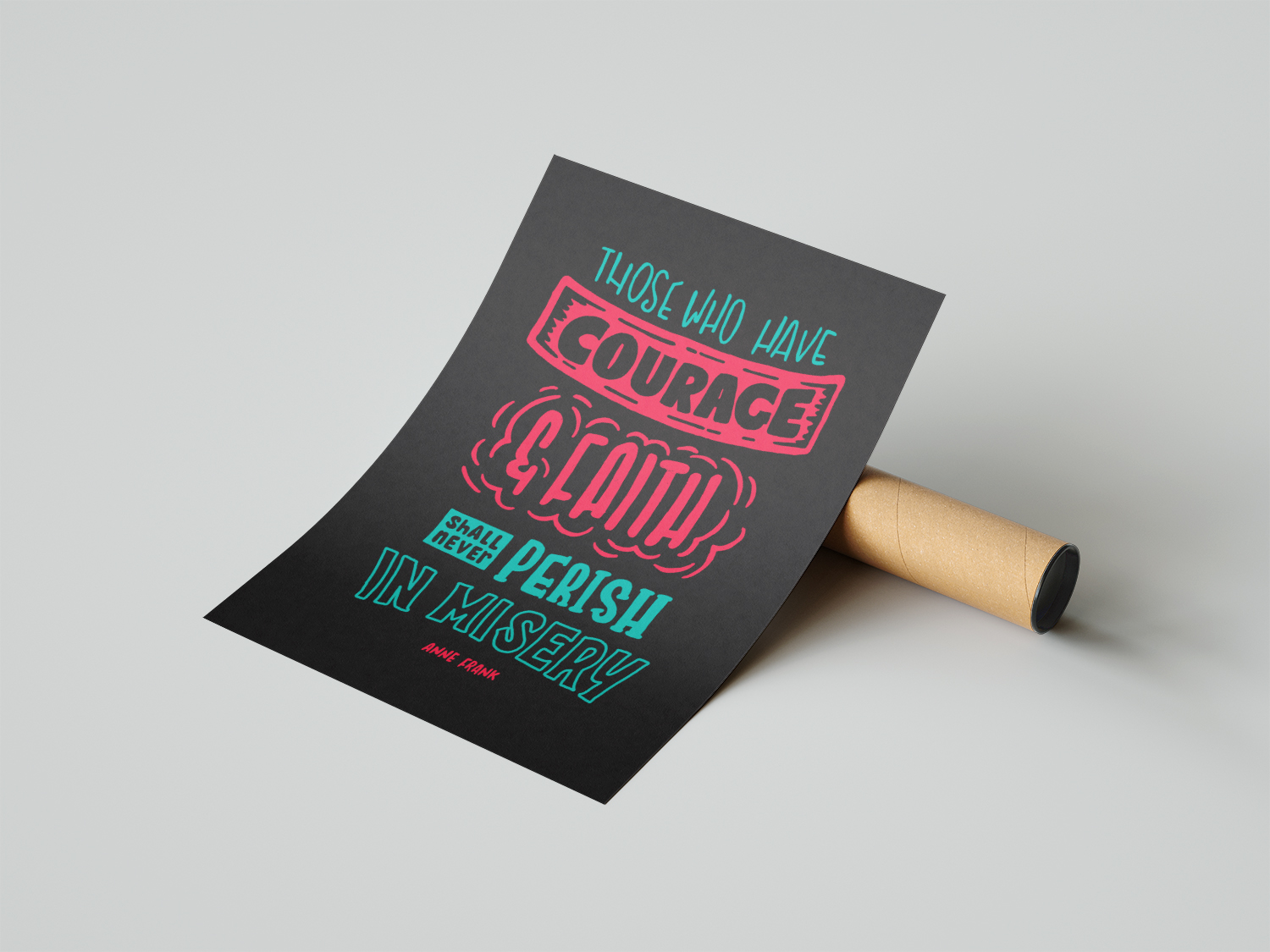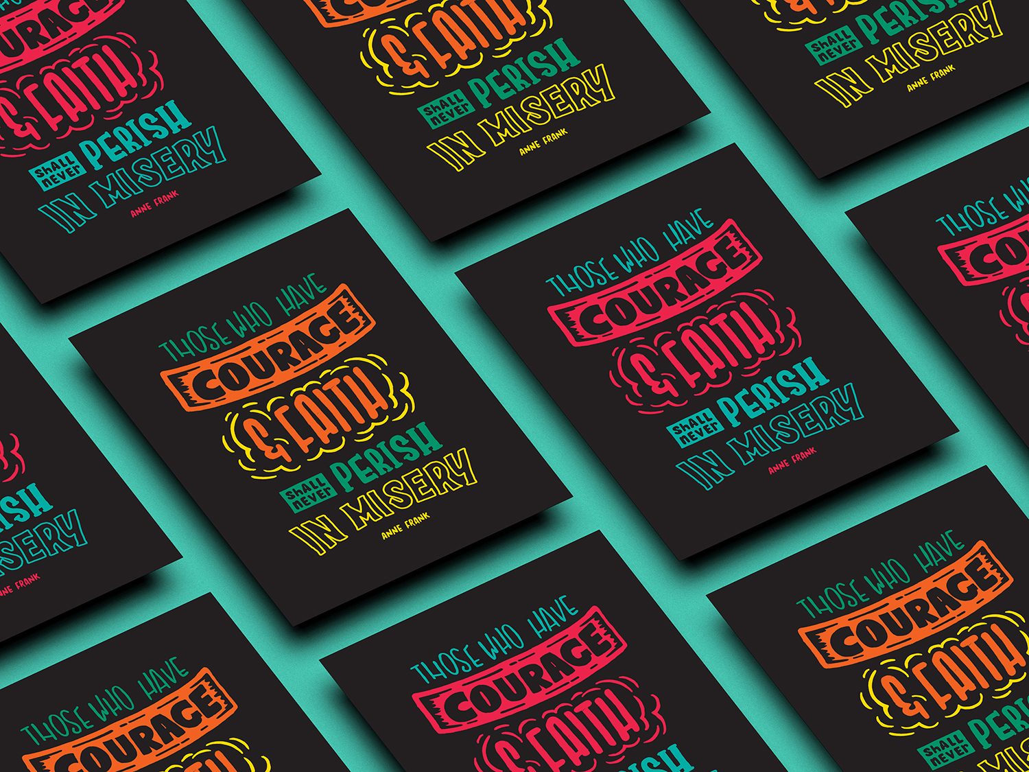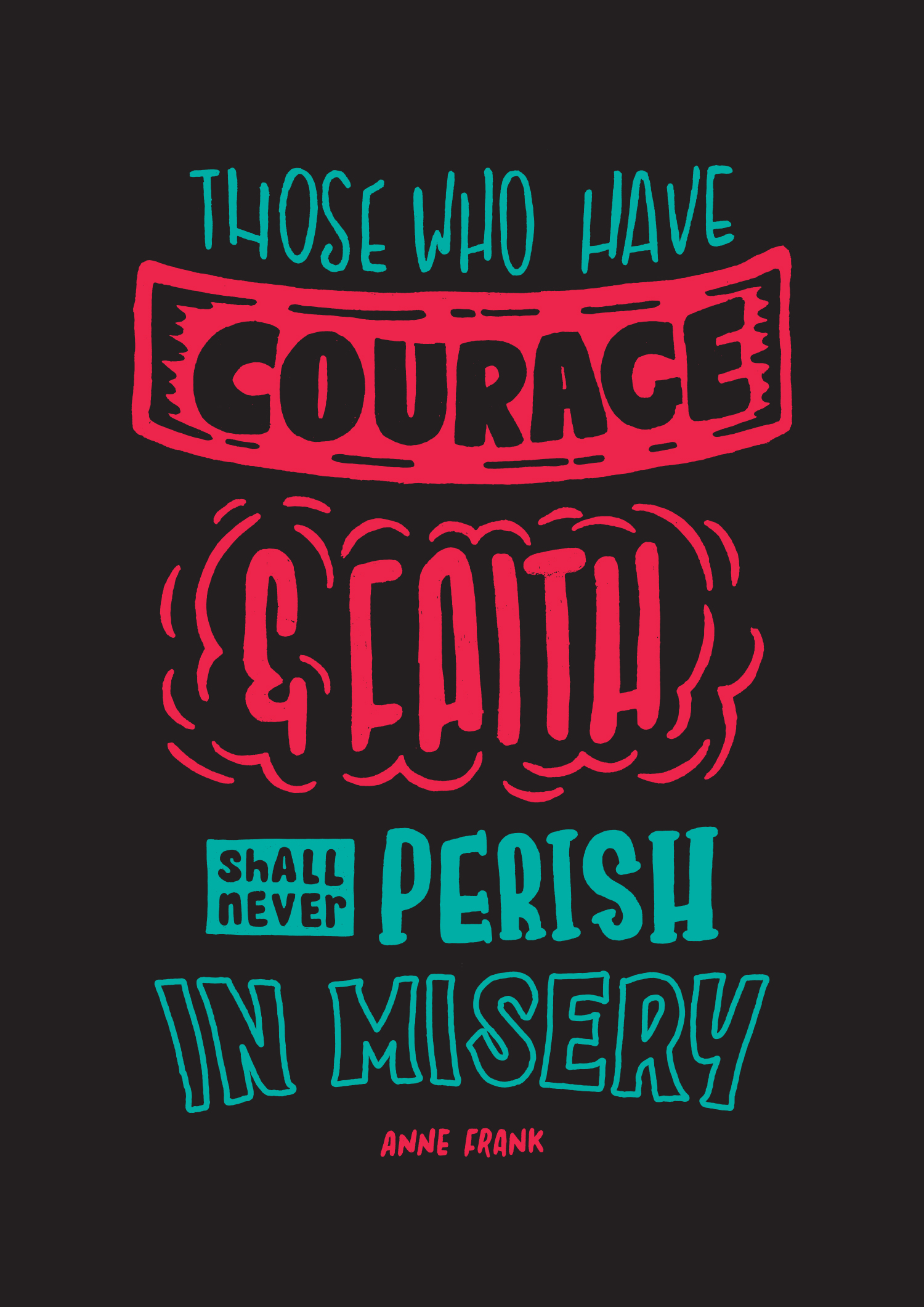 A self-initiated lettering artwork featuring a quote by Anne Frank: “Those who have courage and faith shall never perish in misery.”